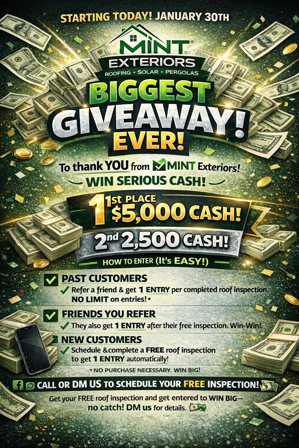 Refer a friend or neighbor for a free roof inspection and receive one entry per completed inspection. (No limit on entries.)